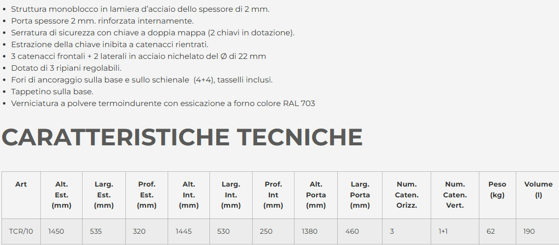 ARMADIO SICUREZZA TCR/10 CON RIPIANI