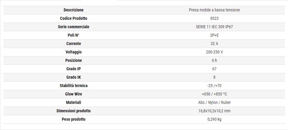 Presa Industriale Monofase 32A IP67