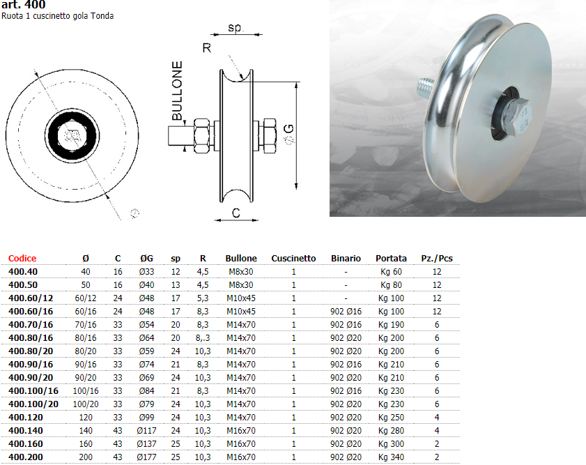 Ruota Cancello Scorrevole Gola "R" con Bullone