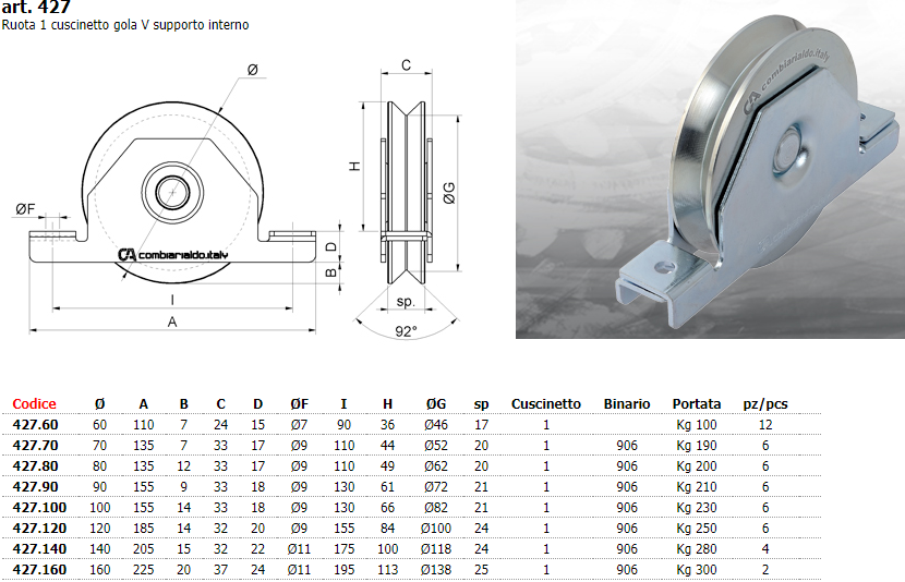 Ruota Gola "V" per Cancello scorrevole ,con supporto