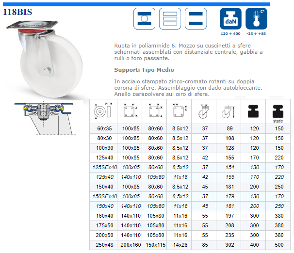 Ruota Nylon Girevole Diam.80