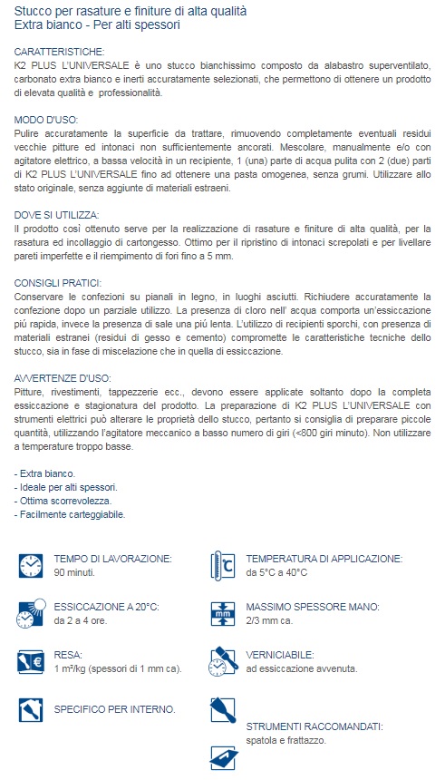 Stucco in polvere per rasature 5kg - K2 PLUS